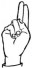На ћирилици написано ВОЈИСЛАВА ОБУЋИНСКИ састоји се из 18 слова [?]. Исписано ћириличном једноручном азбуком за глувонеме: